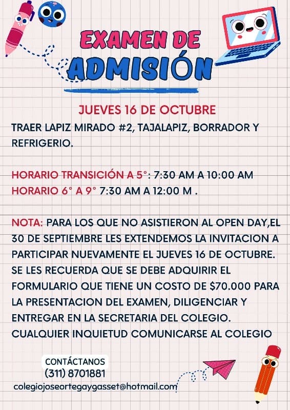 Colegio José Ortega y Gasset El Colegio les desea feliz día El Ortega te Escucha Texto Instructivoclick para descargar La técnica es el esfuerzo para ahorrar esfuerzo. 601+778 2589 - 311 8701881 .. 596594